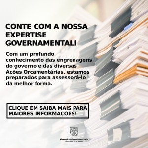 om um profundo conhecimento das engrenagens do governo e das diversas Ações Orçamentárias, estamos preparados para assessorá-lo e assegurar que seus pleitos sejam enquadrados corretamente, garantindo que suas iniciativas sejam implementadas com sucesso.